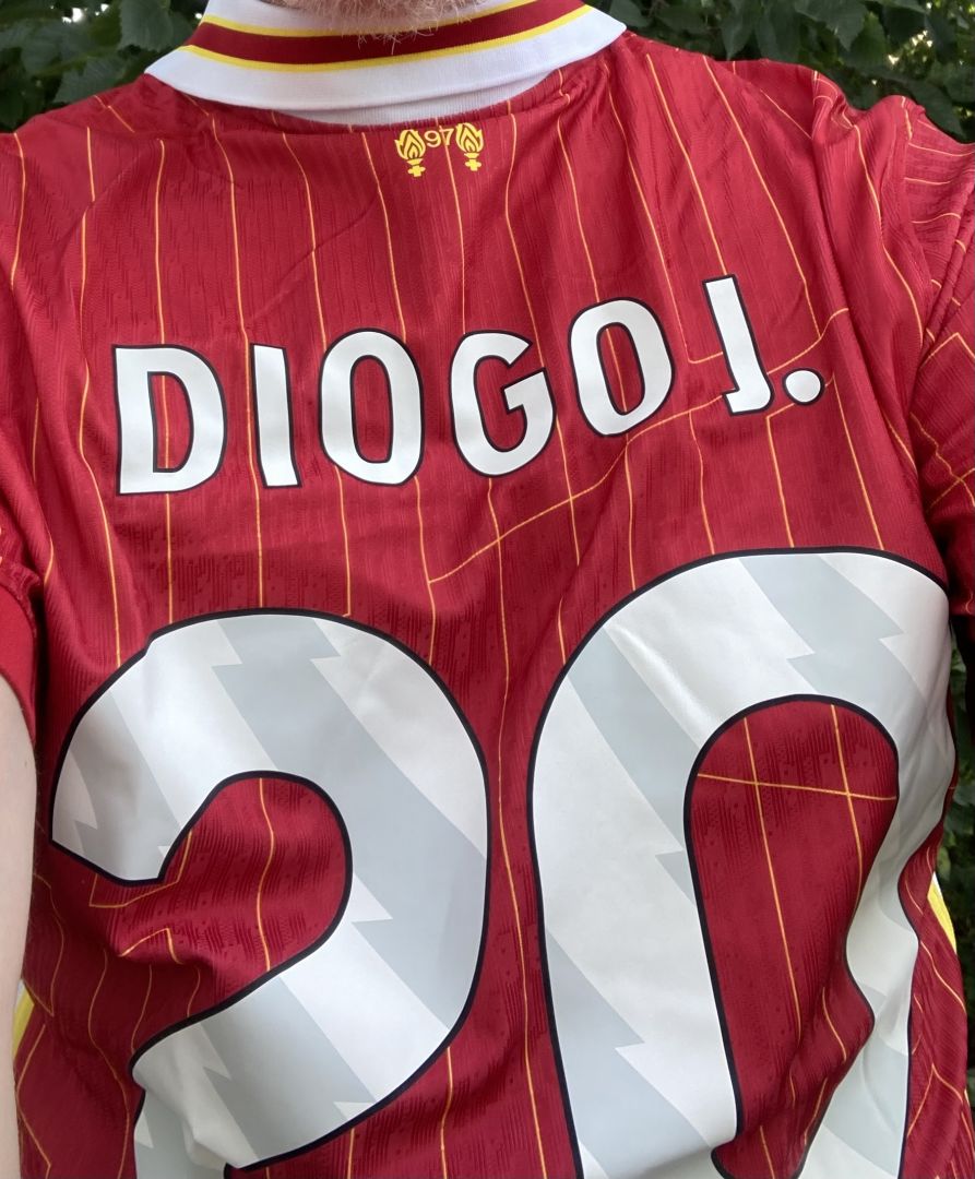 I bought this jersey in remembrance of the passing of Diogo Jota, while commentating the 20th English trophy for Liverpool. KitGoalshop nailed it It’s perfect.